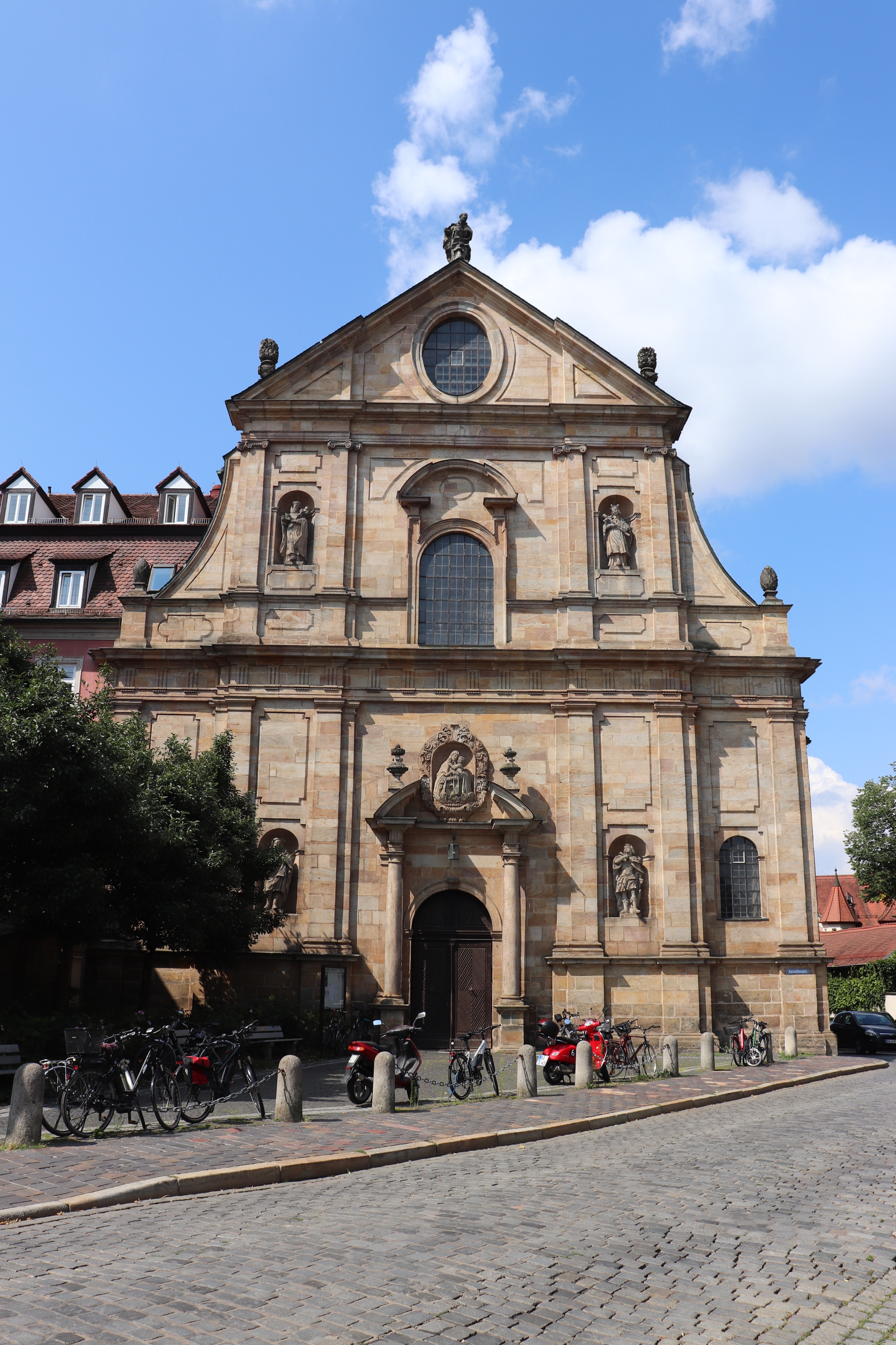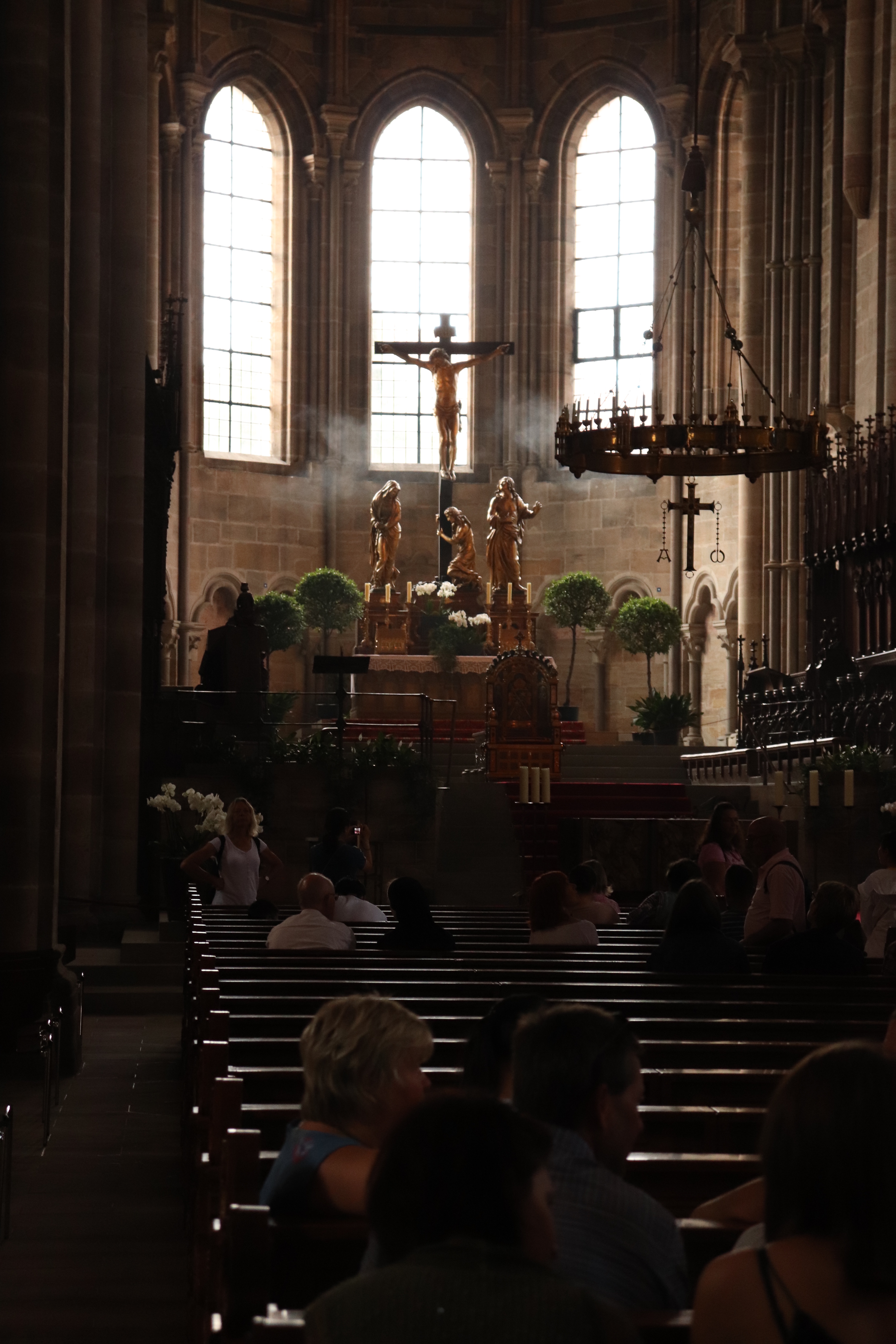 I was also impressed by Bamberg’s Cathedral, der Bamberger Dom, and the square in front of it. First of all, the cathedral is massive, considering the relatively small size of Bamberg. It is located higher up on a hill and is easily recognisable from all over Bambrg with its four imposing towers.